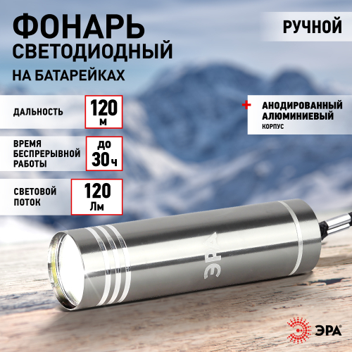 Универсальный светодиодный фонарь "Джет" с корпусом из анодированного алюминия. Такой корпус очень надёжный, не подвергается коррозии, очень прочный и долговечный. Этот фонарь компактный и очень простой, он создан для повседневного использования в быту. Именно поэтому он сделан из качественного материала.Особенность светодиодных фонарей ЭРА - светодиоды нового поколения. В фонаре "Джет" использованы светодиоды премиум класса, они на 50% ярче стандартных и имеют цветовую температуру 6000К. Это значит, фонарь светит ярким белым светом, приближенным к естественному, и не отдаёт в синеву. Фонарь обеспечивает до 30 часов непрерывной работы с мощностью в 1,5 Вт. Этого более чем достаточно для использования в городских условиях. Дальность луча "Джет" - 120 метров. Фонарик легко носить и хранить, с ремешком, который позволит прицепить фонарик к карману или повесить на сумку. "Джет" - маленький, качественный фонарик для самых разных бытовых нужд.