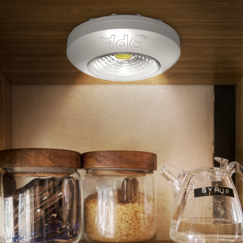 Светодиодный фонарь SB-503 "Аврора" - простой, компактный и очень удобный вариант освещения небольшого пространства. Фонарь снабжен самоклеящимся элементом. Достаточно снять защитную пленку и прикрепить фонарь на ровную и чистую поверхность. Пушлайт легко включается легким нажатием ладони на поверхность фонаря, выключается таким же способом. Фонарь излучает мягкий световой луч на расстояние до 5 метров. Равномерный свет, без мигания обеспечивают светодиоды современного поколения. Работает от трех батареек ААА (в комплект не входят). Менять батарейки можно, не отклеивая фонарь. Пушлайт SB-503 от компании Эра удобно применять в комнате, шкафу, гараже, во время туристических походов (в палатке, шатре). Светодиодный фонарь "Аврора" - отличный вариант беспроводного источника света в любой ситуации.
