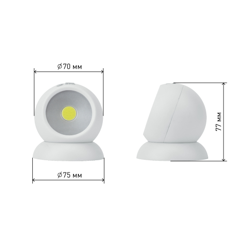 ЭРА SB-801 Сфера-1 - компактный светодиодный фонарь-подсветка на магнитном основании. Позволяет выбирать нужное направление света, вращая устройство под любым углом. Фонарь легко взять с собой и вновь разместить на стационарном магнитном основании. Удобная мобильная подсветка шкафов, рабочих поверхностей кухни, подсобок. Преображает быт, делая его более комфортным. Быстро крепится на самоклеящуюся основу. Для максимально надежной фиксации есть ушко на саморез или гвоздь. Работает от 3 мизинчиковых батареек. Для замены батареек не нужно отклеивать фонарь. База остается на месте, а отсек для элементов питания размещен в съемной части со светодиодами. От одного комплекта батареек непрерывно светит в течение 72 часов. Наличие светоотражателя обеспечивает широкий угол светового пучка. Фонарь освещает до 10 метров пространства. Светодиодная LED-плата COB (технология "мультикристалл на плате") создает сверхъяркий белый свет с высоким световым потоком (120 лм).
