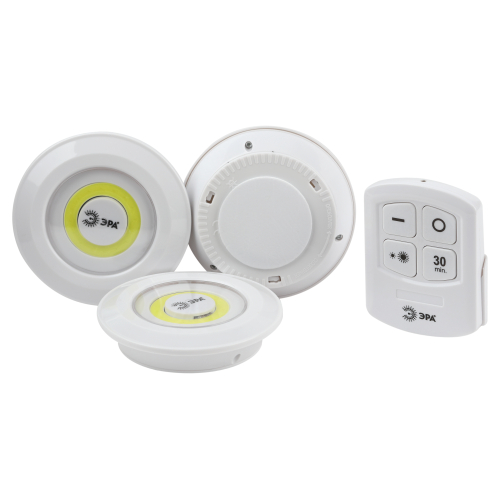 ЭРА Арфа SB-511 "АРФА" - светодиодный беспроводной фонарь с пультом дистанционного управления, он позволяет включать подсветку и изменять яркость на расстоянии, а также устанавливать таймер работы освещения 30 минут. Состоит из 3 компактных самоклеящихся пушлайтов, которые можно включать и пультом, и нажатием на кнопку в центре корпуса. Монтируются на поверхность без сверления - просто отклейте защитный слой и приклейте фонари. В комплекте настенный держатель для пульта на липучке. Круглая форма, небольшие размеры, малый вес и базовый белый цвет делают ЭРА SB-511 универсальной бытовой подсветкой, которую стоит купить в квартиру, загородный дом, на дачу. Удобно подсвечивать затемненные части комнат, кладовки, шкафы, полки, столешницы под кухонными шкафами. Для работы нужны 12 мизинчиковых батареек: 9 для пушлайтов и 3 для пульта (в комплект не входят). Комплекта алкалиновых батареек хватит на 15 часов непрерывного свечения. В пушлайтах установлены сверхъяркие светодиоды последнего поколения.