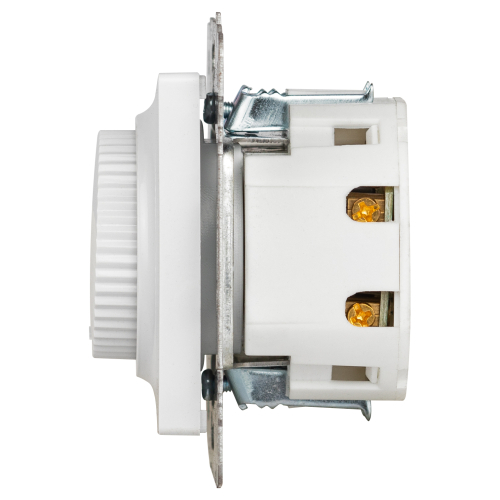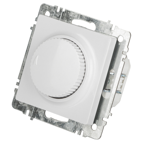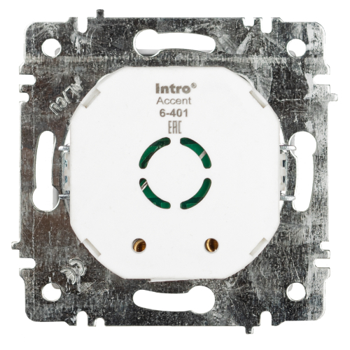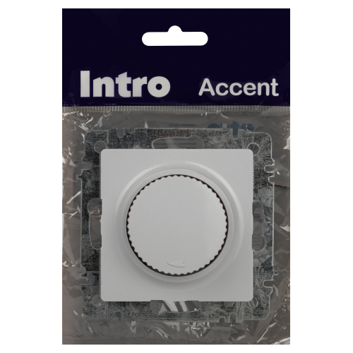 Светорегулятор (диммер) поворотный серии Intro Accent скрытой установки механизм цвет белый 6-401-01. Номинальные характеристики 600Вт 250В IP20. Выполнен из негорючего термопласта. Монтаж в подрозетник производится и на лапки, и на винты. Рамка приобретается отдельно. В серии представлены рамки до 5 постов: на 1 пост - 6-501-хх, на 2 поста - 6-502-хх, на 3 поста - 6-503-хх, на 6 поста - 4-504-хх, на 5 постов - 6-505-хх (где хх - цветовой код: 01 - белый, 01М - матовый белый, 02 - слоновая кость, 03 - алюминий, 04 - шампань, 05 - антрацит, 06 - перламутр, 07 - графит, 08 - бронза, 09 - титан, 10 - венге, 11 - сосна)