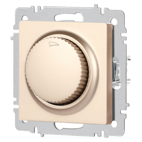 Светорегулятор (диммер) поворотный серии Intro Accent скрытой установки механизм цвет шампань 6-401-04. Номинальные характеристики 600Вт 250В IP20. Выполнен из негорючего термопласта. Монтаж в подрозетник производится и на лапки, и на винты. Рамка приобретается отдельно. В серии представлены рамки до 5 постов: на 1 пост - 6-501-хх, на 2 поста - 6-502-хх, на 3 поста - 6-503-хх, на 6 поста - 4-504-хх, на 5 постов - 6-505-хх (где хх - цветовой код: 01 - белый, 01М - матовый белый, 02 - слоновая кость, 03 - алюминий, 04 - шампань, 05 - антрацит, 06 - перламутр, 07 - графит, 08 - бронза, 09 - титан, 10 - венге, 11 - сосна)
