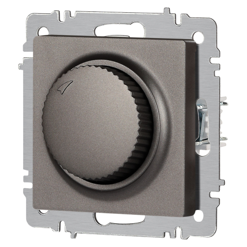 Светорегулятор (диммер) поворотный серии Intro Accent скрытой установки механизм цвет графит 6-401-07. Номинальные характеристики 600Вт 250В IP20. Выполнен из негорючего термопласта. Монтаж в подрозетник производится и на лапки, и на винты. Рамка приобретается отдельно. В серии представлены рамки до 5 постов: на 1 пост - 6-501-хх, на 2 поста - 6-502-хх, на 3 поста - 6-503-хх, на 6 поста - 4-504-хх, на 5 постов - 6-505-хх (где хх - цветовой код: 01 - белый, 01М - матовый белый, 02 - слоновая кость, 03 - алюминий, 04 - шампань, 05 - антрацит, 06 - перламутр, 07 - графит, 08 - бронза, 09 - титан, 10 - венге, 11 - сосна)