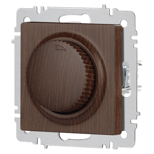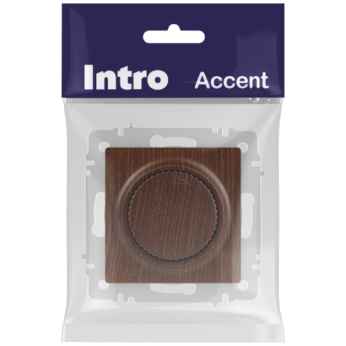 Светорегулятор (диммер) поворотный серии Intro Accent скрытой установки механизм цвет венге 6-401-10. Номинальные характеристики 600Вт 250В IP20. Выполнен из негорючего термопласта. Монтаж в подрозетник производится и на лапки, и на винты. Рамка приобретается отдельно. В серии представлены рамки до 5 постов: на 1 пост - 6-501-хх, на 2 поста - 6-502-хх, на 3 поста - 6-503-хх, на 6 поста - 4-504-хх, на 5 постов - 6-505-хх (где хх - цветовой код: 01 - белый, 01М - матовый белый, 02 - слоновая кость, 03 - алюминий, 04 - шампань, 05 - антрацит, 06 - перламутр, 07 - графит, 08 - бронза, 09 - титан, 10 - венге, 11 - сосна)