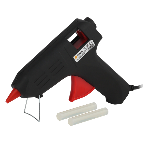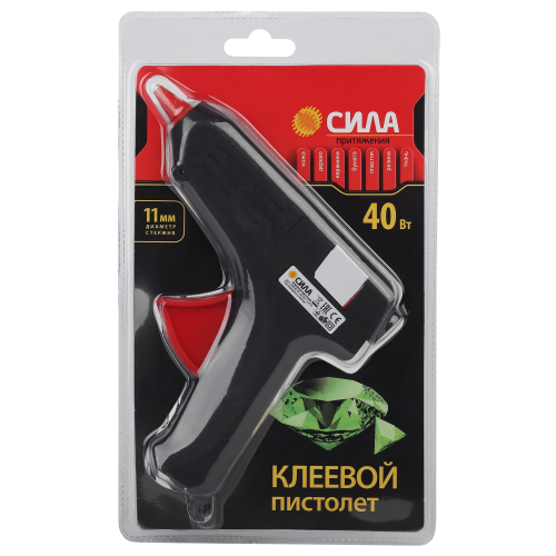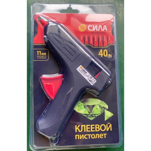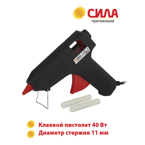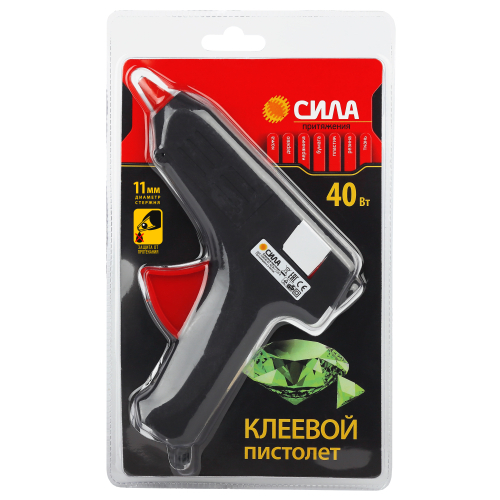 Термопистолет СИЛА заправляется клеевым стержнем диаметром 11 мм. Корпус клеевого пистолета изготовлен из ударопрочного пластика и имеет скобу для надежной установки в нерабочем положении.