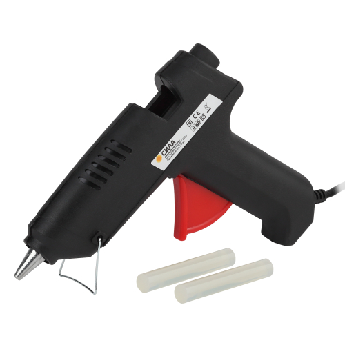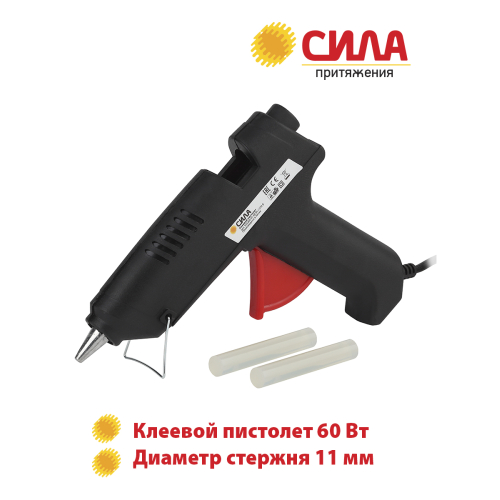 Термопистолет СИЛА заправляется клеевым стержнем диаметром 11 мм. Корпус клеевого пистолета изготовлен из ударопрочного пластика и имеет скобу для надежной установки в нерабочем положении.