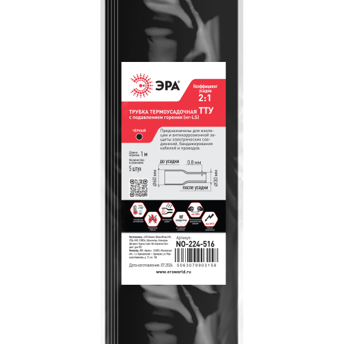 Общепромышленные термоусадочные трубки ТТУ нг-LS в отрезках по 1 метру представляют собой универсальное решение для изоляции, маркировки и бандажирования, изготавливаются методом экструзии из специального состава полиолефина с добавлением антипиренов. Коэффициент термоусадки 2:1 обеспечивает надежную фиксацию и защиту, а широкая цветовая гамма и разнообразие диаметров позволяют подобрать оптимальный вариант для различных задач.