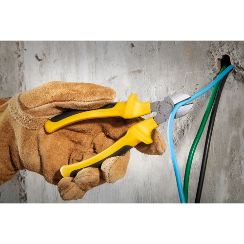 Эти кусачки используются для резки кабелей и проводов как при строительстве, так и при мелком ремонте. Чтобы обеспечить большую прочность и долговечность изделия, его режущие части подверглись специальной термообработке. Кусачки, обладающие полированным шарниром, изготовлены из специальной углеродистой стали с фосфатированием, что вкупе со специальной закалкой на режущей кромке гарантирует более высокую стойкость товара. Изделие можно использовать во время работы с электричеством с максимальным напряжением до 1000 В переменного тока. Эргономичная форма ручек кусачек вместе с мягким их открыванием значительно облегчает работу и повышает комфорт от взаимодействия с инструментом.