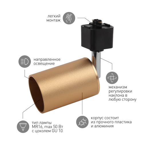 Трековый светильник TR14-GU10 SG от компании Эра поможет создать необходимый акцент в пространстве помещения. Он подчеркнет конкретный объект, создаст выразительную подсветку стеллажа. Подобные светильники имеют особый механизм, который позволяет регулировать угол наклона, изменяя стиль пространства в целом. В магазинах они направляют потенциального покупателя к конкретному товару, а в офисных open space - разграничивают пространство. Источником света в данной модели светильника выступает лампа с цоколем GU10, что делает его максимально универсальным и дает возможность выбрать необходимую мощность, цветовую температуру и угол рассеивания света. Этот стильный источник света в золотистом исполнении отлично впишется в любой дизайн, создаст нужные акценты. Большое разнообразие моделей трековых светильников Эра позволит подобрать наиболее подходящий вариант в конкретное помещение.