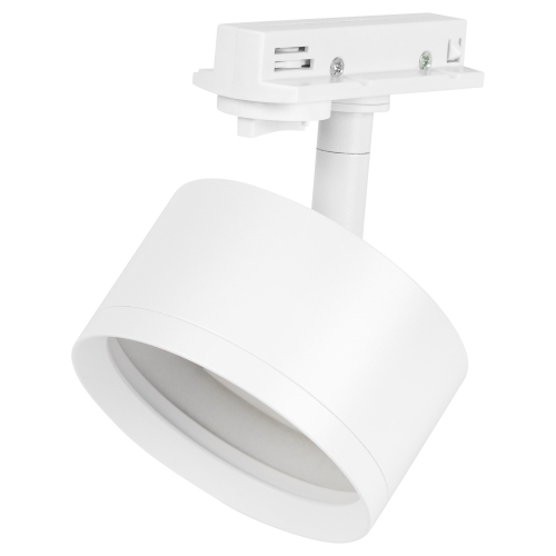 Однофазный трековый светильник под лампу с цоколем GX53 с плоским трековым адаптером. Корпус светильника выполнен из алюминия. Главной особенностью данной модели является компактный корпус, для такого вида светильников и утопленный трековый адаптер. Модель может быть достаточно яркой, при использовании ламп 12 ватт и создавать основное освещение, за счет широкого угла рассеивания GX53.