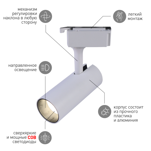 Однофазные трековые светильники от компании Эра. Модели поставляются в черном и белом цвете корпуса. Угол рассеивания света составляет 24 градуса, цветовая температура 4000К, что соответствует комфортному дневному свету. Светильники отлично подойдут для освещения торговых площадей или создания акцентов в жилых интерьерах, выполненных в современном стиле. Срок службы светодиодов составляет 50000 часов, за их стабильную и длительную работу отвечает современный импульсный драйвер, с защитой от скачков напряжения и высокочастотных помех. Все эти качества делают светильник отличным выбором для вашего проекта.