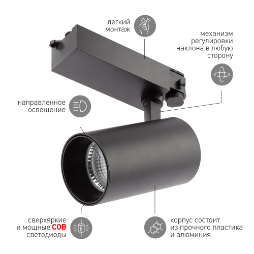 Серия трехфазных трековых светильников от компании Эра. Модель черного цвета и цветовой температуры 4000К( нейтральный белый), мощностью 40 ватт. Угол рассеивания света составляет 36 градусов, что является золотым стандартом для трекового освещения. Светильник имеет классический, минималистичный дизайн, который позволяет его использовать как в проектах освещения комерческих площадей, так и в современных интерьерах. Инженеры компании Эра создавая модель STR-30 использовали электронные компоненты высокого качества, что гарантирует долгую и бесперебойную работу. Светильник STR-30, это симбиоз технологичности, надежности и разумной цены.