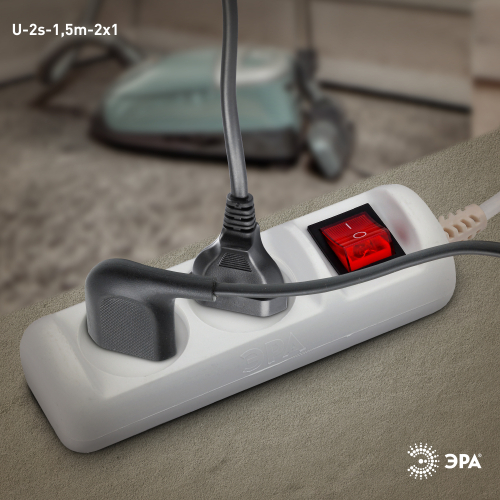 Удлинитель электрический Эра U-2s-1,5m-2x1 без заземления, с выключателем, ПВС, 2x1мм2, 2 розетки, 1,5м. Рассчитан на максимальную мощность 10А/2200 Вт. Удлинитель Эра станет Вашим надежным помощником, если Ваши любимые электроприборы находятся далеко от розеток. Провод в удлинителях Эра сделан из 100% меди, что делает его абсолютно пожаробезопасным. Корпус выполнен из ударопрочного и негорючего пластика (полипропилен). Модель удлинителя на 10А позволяет подключить бытовые приборы общей нагрузкой до 2200Вт. Дизайн удлинителя разработан в России командой Эра Style.