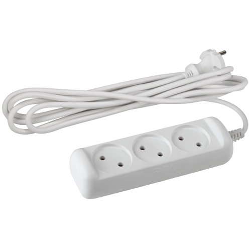 Удлинитель электрический Эра U-3-1,5m без заземления, ПВС, 2x1мм2, 3 розетки, 1,5м. Рассчитан на максимальную мощность 10А/2200 Вт. Удлинитель Эра станет Вашим надежным помощником, если Ваши любимые электроприборы находятся далеко от розеток. Провод в удлинителях Эра сделан из 100% меди, что делает его абсолютно пожаробезопасным. Корпус выполнен из ударопрочного и негорючего пластика (полипропилен). В моделях с заземлением у вилки есть кольцо для удобного извлечения из розетки. Модель удлинителя на 10А позволяет подключить мощные бытовые приборы общей нагрузкой до 2200Вт. Не бойтесь включить чайник, обогреватель, микроволновку или другие электроприборы. Толстый провод удлинителя Эра гарантирует полную безопасность. Дизайн удлинителя разработан в России командой Эра Style.