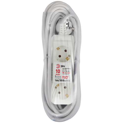 Удлинитель электрический Эра U-3e-10m-3x1,5 с заземлением, 3 розетки, 10м ПВС 3x1,5мм2. Для мощных приборов. Рассчитан на максимальную мощность 16А/3500. Удлинитель Эра станет Вашим надежным помощником, если Ваши любимые электроприборы находятся далеко от розеток.