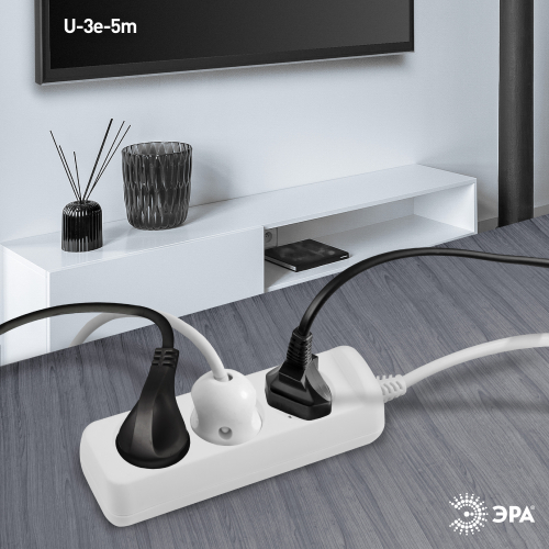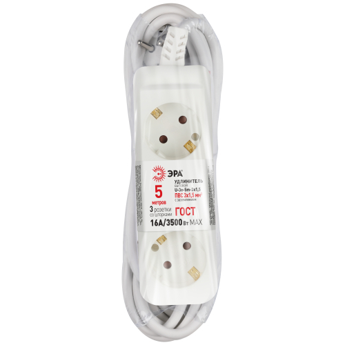 Удлинитель электрический Эра U-3e-5m-3x1,5 с заземлением, 3 розетки, 5м ПВС 3x1,5мм2. Для мощных приборов. Рассчитан на максимальную мощность 16А/3500. Удлинитель Эра станет Вашим надежным помощником, если Ваши любимые электроприборы находятся далеко от розеток.