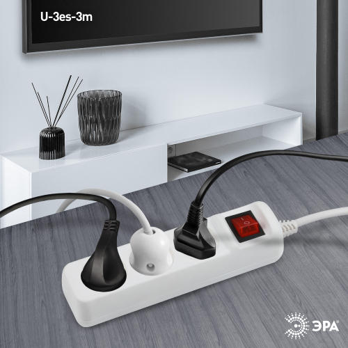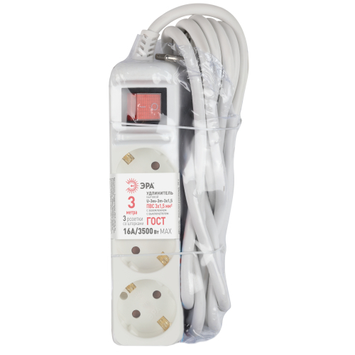 Удлинитель электрический Эра U-3es-3m-3x1,5 с заземлением, с выключателем, 3 розетки, 3м ПВС 3x1,5мм2. Для мощных приборов. Рассчитан на максимальную мощность 16А/3500. Удлинитель Эра станет Вашим надежным помощником, если Ваши любимые электроприборы находятся далеко от розеток.