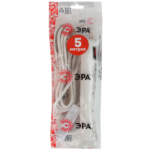Удлинитель электрический Эра U-4s-5m-2x1 без заземления, с выключателем, ПВС, 2x1мм2, 4 розетки, 5 м. Рассчитан на максимальную мощность 10А/2200 Вт. Удлинитель Эра станет Вашим надежным помощником, если Ваши любимые электроприборы находятся далеко от розеток. Провод в удлинителях Эра сделан из 100% меди, что делает его абсолютно пожаробезопасным. Корпус выполнен из ударопрочного и негорючего пластика (полипропилен). Модель удлинителя на 10А позволяет подключить бытовые приборы общей нагрузкой до 2200Вт. Дизайн удлинителя разработан в России командой Эра Style.