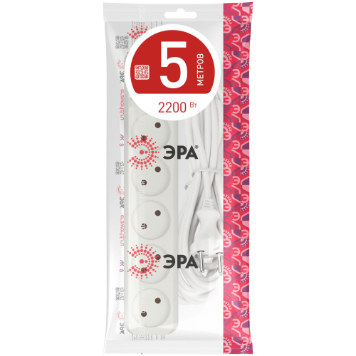 Удлинитель электрический Эра U-5s-5m-2x1 без заземления, c выключателем, 5 розеток, 5м ПВС 2x1мм2. Рассчитан на максимальную мощность 10А/2200. Удлинитель Эра станет Вашим надежным помощником, если Ваши любимые электроприборы находятся далеко от розеток. Провод в удлинителях Эра сделан из 100% меди, что делает его абсолютно пожаробезопасным. Корпус выполнен из ударопрочного и негорючего пластика (полипропилен). Модель удлинителя на 10А позволяет подключить бытовые приборы общей нагрузкой до 2200Вт. Дизайн удлинителя разработан в России командой Эра Style.