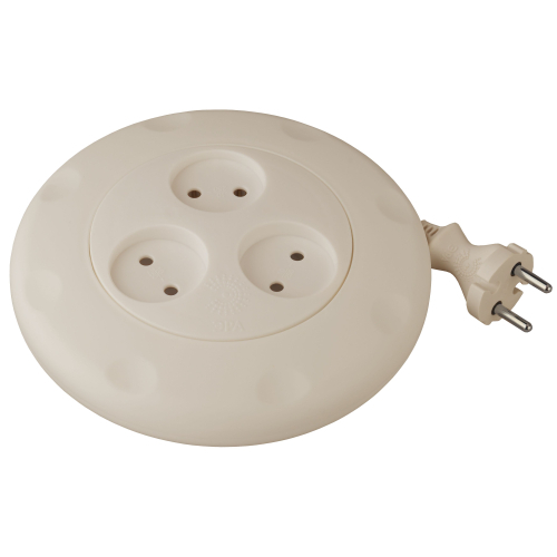 Удлинитель ЭРА Calypso. Катушка - удобный ручной механизм сматывания провода. Максимальная мощность - 10А/2200В. Материал копуса - полипропилен с антипиренами (негорючий). Контактные группы - латунь.