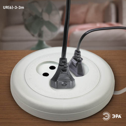 Удлинитель ЭРА серии UX без заземления: провод ШВВП 2x0.75мм2, корпус - ABS-пластик, негорючие вставки из армлена, максимальная нагрузка - 6A/1300Вт