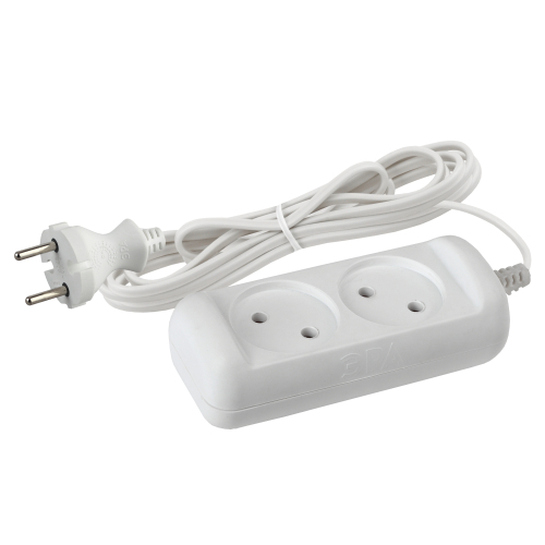 Компактный бытовой удлинитель ЭРА UX-2-3m на 2 розетки, без заземления. Рассчитан на одновременное подключение к розетке до двух маломощных электроприборов, максимальная нагрузка - 6 A/ 1300 Вт. Самая популярная длина шнура 3 метра. Надёжный двухжильный провод ШВВП. Корпус изготовлен из прочного негорючего полипропилена с защищающими от возгорания антипиренами. Закруглённые углы, брендирование на вилке и корпусе, базовый белый цвет этот удлинитель отличается аккуратным приятным дизайном.