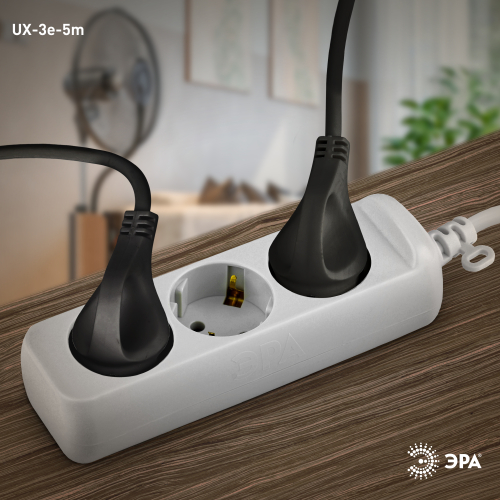 Удлинитель электрический Эра UX-3e-5m с заземлением, ПВС, 3x0,75мм2, 3 розетки, 5 м. Рассчитан на максимальную мощность 10А/2200 Вт. Удлинитель Эра станет Вашим надежным помощником, если Ваши любимые электроприборы находятся далеко от розеток. Провод в удлинителях Эра сделан из 100% меди, что делает его абсолютно пожаробезопасным. Корпус выполнен из ударопрочного и негорючего пластика (полипропилен). Вилка обеспечена кольцом для удобного извлечения ее из розетки. Модель удлинителя на 10А позволяет подключить бытовые приборы общей нагрузкой до 2200Вт. Дизайн удлинителя разработан в России командой Эра Style.