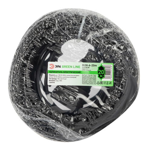 Удлинитель силовой ЭРА GREEN LINE в бухте BUH-6-20m без заземления, 1 розетка, провод 20м ПВС 2х0,75мм2. Степень защиты IP20. Мощность 6А/1300Вт. Используется для работы на строительных площадках или дачных участках. Удобен при работе с приборами находящимися удаленно от стационарной розетки. Например, газонокосилки, электрические пилы, триммеры или электродрели.