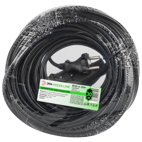 Удлинитель силовой ЭРА GREEN LINE в бухте BUH-6-30m без заземления, 1 розетка, провод 30м ПВС 2х0,75мм2. Степень защиты IP20. Мощность 6А/1300Вт. Используется для работы на строительных площадках или дачных участках. Удобен при работе с приборами находящимися удаленно от стационарной розетки. Например, газонокосилки, электрические пилы, триммеры или электродрели.