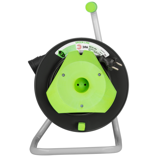 Удлинитель силовой ЭРА GREEN LINE на пластиковой катушке GAZ-2x1-40m, 1 розетка без крышки-IP20 без заземления. Провод 40м ПВС 2х1мм2. Мощность 10А/2200Вт. Используется для работы на строительных площадках или дачных участках. Удобен при работе с приборами, находящимися удаленно от стационарной розетки. Например, газонокосилки, электрические, пилы, триммеры или электродрели. Рама удлинителя сделана из высокопрочной стали, а пластиковой корпус катушки выполнен с применением негорючих добавок.