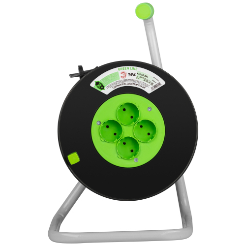 Удлинитель силовой ЭРА GREEN LINE на пластиковой катушке KAT-2x1-20m, 4 розетки без заземления. Провод ПВС 2х1мм2, 20м. Мощность 10А/2200Вт. Используется для работы на строительных площадках или дачных участках. Удобен при работе с приборами, находящимися удаленно от стационарной розетки. Например, газонокосилки, электрические, пилы, триммеры или электродрели. Рама катушки сделана из высокопрочной стали, а пластиковой корпус катушки выполнен с применением негорючих добавок.