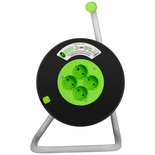 Удлинитель силовой ЭРА GREEN LINE на пластиковой катушке KAT-2x1.5-30m, 4 розетки без крышек -IP20 без заземления. Провод ПВС 2х1,5мм2, 30м. Мощность 16А/3500Вт. Используется для работы на строительных площадках или дачных участках. Удобен при работе с приборами, находящимися удаленно от стационарной розетки. Например, газонокосилки, электрические, пилы, триммеры или электродрели. Рама катушки сделана из высокопрочной стали, а пластиковой корпус катушки выполнен с применением негорючих добавок.