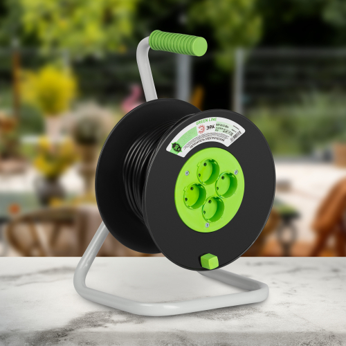 Удлинитель силовой ЭРА GREEN LINE на пластиковой катушке KAT-2x1.5-30m, 4 розетки без заземления. Провод ПВС 2х1,5мм2, 30м. Мощность 16А/3500Вт. Используется для работы на строительных площадках или дачных участках. Удобен при работе с приборами, находящимися удаленно от стационарной розетки. Например, газонокосилки, электрические, пилы, триммеры или электродрели. Рама катушки сделана из высокопрочной стали, а пластиковой корпус катушки выполнен с применением негорючих добавок.