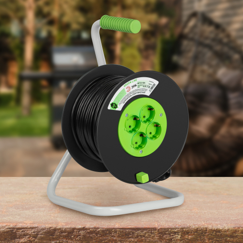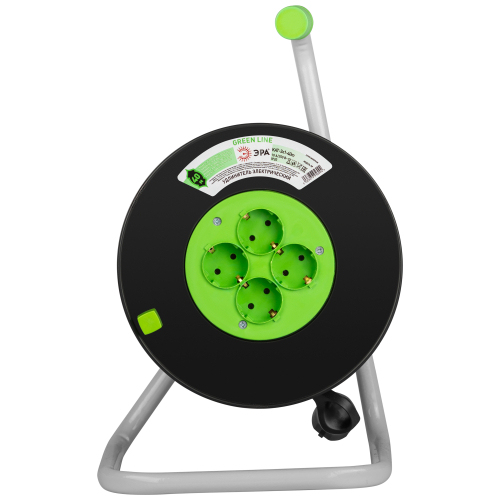 Удлинитель силовой ЭРА GREEN LINE на пластиковой катушке KAT-3x1-40m, 4 розетки с заземлением. Провод ПВС 3х1мм2, 40м. Мощность 10А/2200Вт. Используется для работы на строительных площадках или дачных участках. Удобен при работе с приборами, находящимися удаленно от стационарной розетки. Например, газонокосилки, электрические, пилы, триммеры или электродрели. Рама катушки сделана из высокопрочной стали, а пластиковой корпус катушки выполнен с применением негорючих добавок.