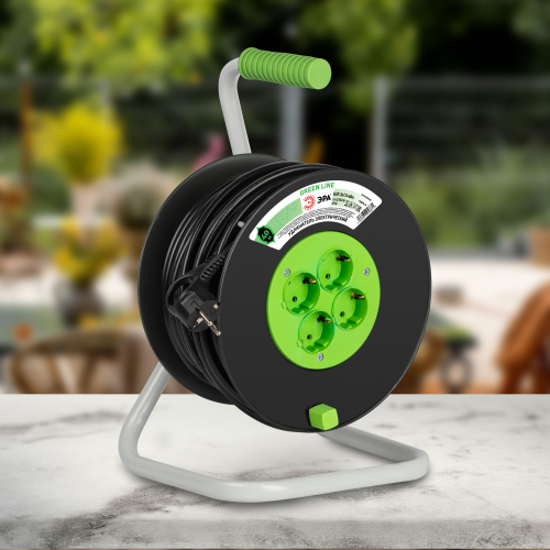 Удлинитель силовой ЭРА GREEN LINE на пластиковой катушке KAT-3x1.5-40m, 4 розетки с заземлением. Провод ПВС 3х1,5мм2, 40м. Мощность 16А/3500Вт. Используется для работы на строительных площадках или дачных участках. Удобен при работе с приборами, находящимися удаленно от стационарной розетки. Например, газонокосилки, электрические, пилы, триммеры или электродрели. Рама катушки сделана из высокопрочной стали, а пластиковой корпус катушки выполнен с применением негорючих добавок.