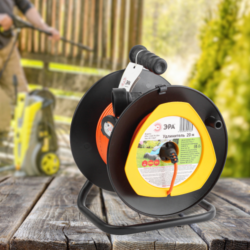 Удлинитель силовой на пластиковой катушке ЭРА RPx-1-2x0.75-20m без заземления, ПВС 2х0,75м2, 1 розетка, 20 м. Мощность 6А/1300Вт. Используется для работы на строительных площадках или дачных участках. Удобен при работе с приборами находящимися удаленно от стационарной розетки. Например, газонокосилки, электрические, пилы, триммеры или электродрели. Провод в удлинителях Эра сделан из 100% меди, что делает его абсолютно пожаробезопасным. Рама удлинителя сделана из высокопрочной стали а пластиковой корпус выполнен с применением негорючих добавок.