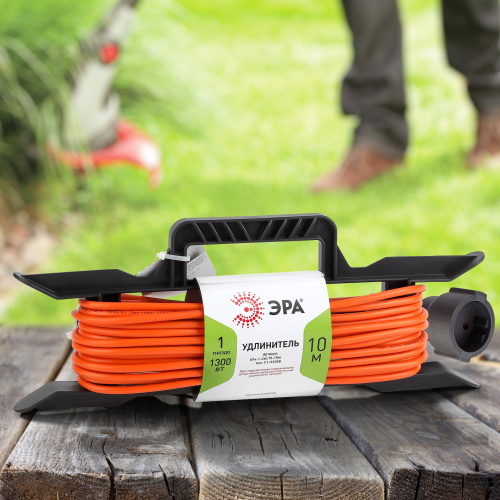 Удлинитель силовой на рамке ЭРА UFx-1-2x0.75-10m без заземления, ПВС 2х0,75м2, 1 розетка, 10м. Мощность 6А/1300Вт. Используется для работы на строительных площадках или дачных участках. Удобен при работе с приборами находящимися удаленно от стационарной розетки. Например, газонокосилки, электрические, пилы, триммеры или электродрели. Провод в удлинителях Эра сделан из 100% меди, что делает его абсолютно пожаробезопасным. Рама-полипропилен.