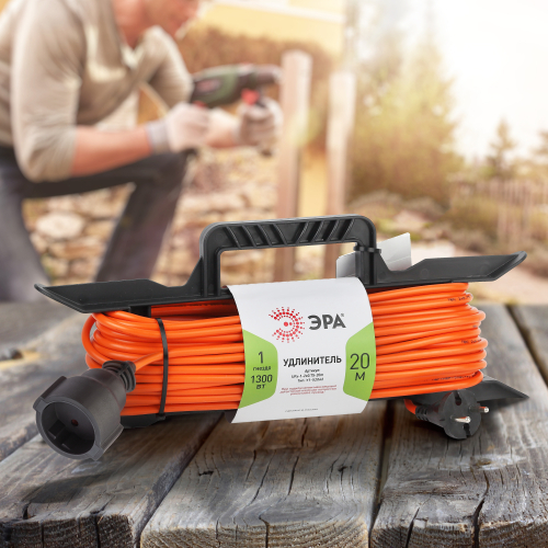 Удлинитель силовой на рамке UFx-1-2x0.75-20m на рамке без заземления 1 розетка, 20м ПВС 2x0.75мм2, степень защиты IP20. Мощность 6А/1300Вт. Используется для работы на строительных площадках или дачных участках. Удобен при работе с приборами находящимися удаленно от стационарной розетки. Например, газонокосилки, электрические, пилы, триммеры или электродрели. Провод в удлинителях Эра сделан из 100% меди, что делает его абсолютно пожаробезопасным. Рама-полипропилен.