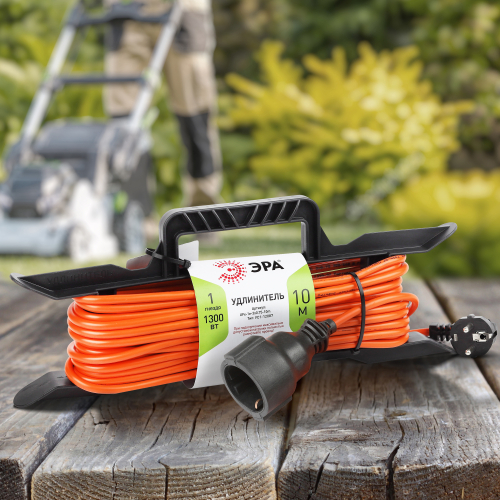 Силовой удлинитель на удобной рамке с ручкой. Длина шнура 10 метров. Позволяет работать с электроприборами на значительном расстоянии от сети. Максимальная нагрузка - 6 А / 1300 Вт. Надёжный трёхжильный провод. Отличное решение для строительных, ремонтных, дачных работ. Можно эффективно использовать при температурах от -25 до +40 °С. Рамка позволяет применять удлинитель с максимальным удобством шнур не спутывается, вы отматываете нужную вам длину.