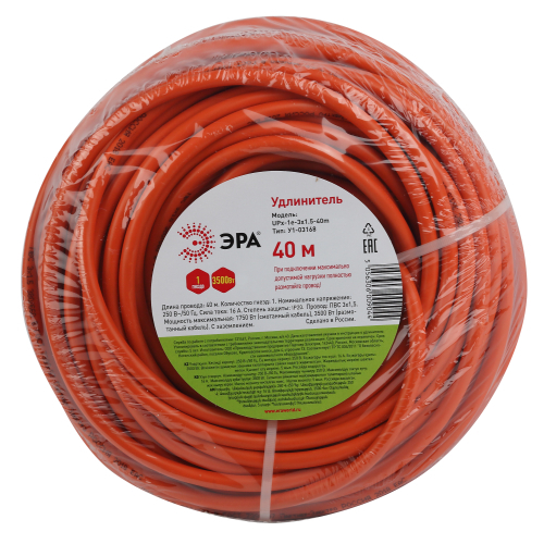 Удлинитель силовой в бухте ЭРА UPx-1e-3x1.5-40m с заземлением ПВС, 3x1.5м2, 40м, 1 розетка. Мощность 16A/ 3500Вт. Используется для работы на строительных площадках или дачных участках. Удобен при работе с приборами находящимися удаленно от стационарной розетки. Например газонокосилки, электрические пилы, триммеры или электродрели. Провод в удлинителях Эра сделан из 100% меди, что делает его абсолютно пожаробезопасным.