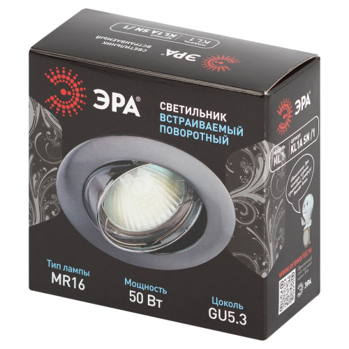 Точечный поворотный светильник KL1A SN/1 предназначен для встраивания в потолок или стены. Он идеально подойдет для самых разных целей – с помощью таких светильников можно подчеркнуть отдельные зоны в комнатах и успешно расставить акценты. С помощью встраиваемых светильников можно подсвечивать зоны от рабочего места до пространства для готовки на кухне. Благодаря поворотному механизму светильник можно направить в нужные участки, например, в рабочую область. С таким механизмом вы имеете возможность поменять световой рисунок в комнате в любой момент. KL1A SN/1 выполнен из алюминия, отличающегося своими качеством и долговечностью. Внешний размер светильника - 81 миллиметров, а монтажный - 75 миллиметров. Для данного светильника подойдет лампа MR16 с цоколем GU5.3 максимальной мощности 50 Вт. Степень защиты светильника - IP20, она дает возможность устанавливать его в разных помещениях, кроме тех, где повышена влажность. Светильник выполнен в цвете сатин никель , что позволяет размещать его в самых разных интерьерах: от лофта до классицизма. Купив светильник Эра, вы сможете создать в своем доме атмосферу уюта и комфорта.