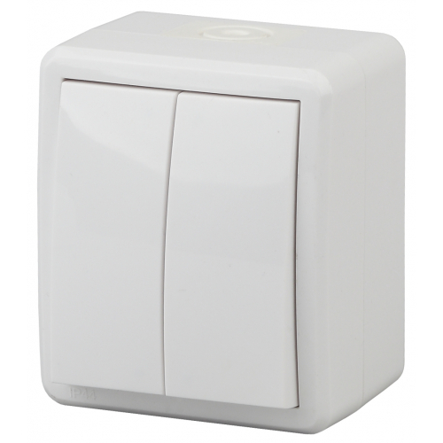 Выключатель влагозащищённый IP54 2-клавишный серии Эра Эксперт открытой уст. цвет белый 11-1404-01. Номинальные характеристики. Выключатель выполнен из качественного поликарбоната, оснащён уникальными винтовыми клеммами ЭКСПЕРТ для максимально качественного зажима кабеля в механизме.