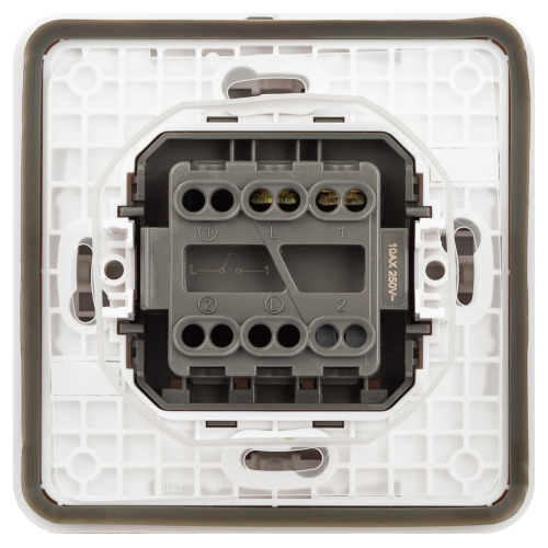 Выключатель влагозащищённый 1-клавишный серии Эра Эксперт накладной IP55 цвет белый 11-1521-01 скрытой установки. Номинальные характеристики 10А 250В . Выполнен из качественного поликарбоната, оснащён уникальными винтовыми клеммами ЭКСПЕРТ для максимально качественного зажима кабеля в механизме.