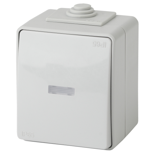 Выключатель влагозащищённый 1-клавишный с подсветкой серии Эра Эксперт накладн IP65 цвет серый 11-1602-03. Номинальные характеристики 10А 250В. Выполнен из качественного поликарбоната, оснащён уникальными винтовыми клеммами ЭКСПЕРТ для максимально качественного зажима кабеля в механизме.