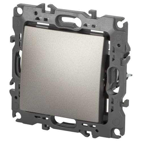 Выключатель одноклавишный серии Эра 12 скрытой установки механизм цвет титан 12-1101-16. Номинальные характеристики 10А 250В . Сделан из поликарбоната, оснащён автоматическими клеммами для быстрой и надёжной фиксации жил кабеля в механизме. Парные клеммы обеспечивают соединение шлейфом. Монтаж в подрозетник производится и на лапки, и на винты. Рамки приобретаются отдельно.