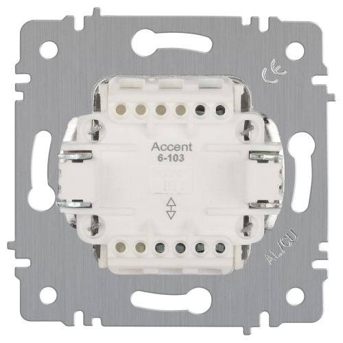 Выключатель одноклавишный серии Intro Accent скрытой установки, механизм цвет белый 6-101-01. Номинальные характеристики 10А 250В. Выполнен из негорючего термопласта, оснащён винтовыми клеммами. Парные клеммы обеспечивают соединение шлейфом. Монтаж в подрозетник производится и на лапки, и на винты. Рамка приобретается отдельно. В серии представлены рамки до 5 постов: на 1 пост - 6-501-хх, на 2 поста - 6-502-хх, на 3 поста - 6-503-хх, на 6 поста - 4-504-хх, на 5 постов - 6-505-хх (где хх - цветовой код: 01 - белый, 01М - матовый белый, 02 - слоновая кость, 03 - алюминий, 04 - шампань, 05 - антрацит, 06 - перламутр, 07 - графит, 08 - бронза, 09 - титан, 10 - венге, 11 - сосна).