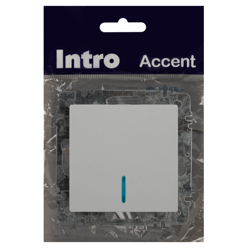 Выключатель 1-клавишный с подсветкой серии Intro Accent скрытой установки механизм цвет белый 6-102-01. Номинальные характеристики 10А 250В. Выполнен из негорючего термопласта, оснащён винтовыми клеммами. Парные клеммы обеспечивают соединение шлейфом. Монтаж в подрозетник производится и на лапки, и на винты. Рамка приобретается отдельно. В серии представлены рамки до 5 постов: на 1 пост - 6-501-хх, на 2 поста - 6-502-хх, на 3 поста - 6-503-хх, на 6 поста - 4-504-хх, на 5 постов - 6-505-хх (где хх - цветовой код: 01 - белый, 01М - матовый белый, 02 - слоновая кость, 03 - алюминий, 04 - шампань, 05 - антрацит, 06 - перламутр, 07 - графит, 08 - бронза, 09 - титан, 10 - венге, 11 - сосна).