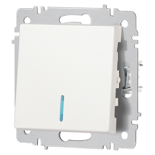 Выключатель 1-клавишный с подсветкой серии Intro Accent скрытой установки механизм цвет перламутр 6-102-06. Номинальные характеристики 10А 250В. Выполнен из негорючего термопласта, оснащён винтовыми клеммами. Парные клеммы обеспечивают соединение шлейфом. Монтаж в подрозетник производится и на лапки, и на винты. Рамка приобретается отдельно. В серии представлены рамки до 5 постов: на 1 пост - 6-501-хх, на 2 поста - 6-502-хх, на 3 поста - 6-503-хх, на 6 поста - 4-504-хх, на 5 постов - 6-505-хх (где хх - цветовой код: 01 - белый, 01М - матовый белый, 02 - слоновая кость, 03 - алюминий, 04 - шампань, 05 - антрацит, 06 - перламутр, 07 - графит, 08 - бронза, 09 - титан, 10 - венге, 11 - сосна)