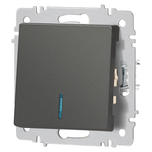 Выключатель 1-клавишный с подсветкой серии Intro Accent скрытой установки механизм цвет графит 6-102-07. Номинальные характеристики 10А 250В. Выполнен из негорючего термопласта, оснащён винтовыми клеммами. Парные клеммы обеспечивают соединение шлейфом. Монтаж в подрозетник производится и на лапки, и на винты. Рамка приобретается отдельно. В серии представлены рамки до 5 постов: на 1 пост - 6-501-хх, на 2 поста - 6-502-хх, на 3 поста - 6-503-хх, на 6 поста - 4-504-хх, на 5 постов - 6-505-хх (где хх - цветовой код: 01 - белый, 01М - матовый белый, 02 - слоновая кость, 03 - алюминий, 04 - шампань, 05 - антрацит, 06 - перламутр, 07 - графит, 08 - бронза, 09 - титан, 10 - венге, 11 - сосна)