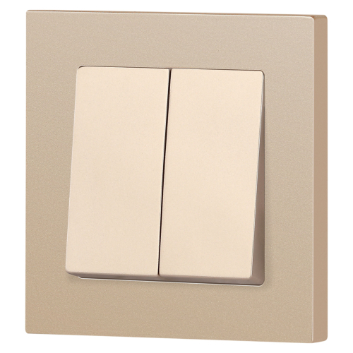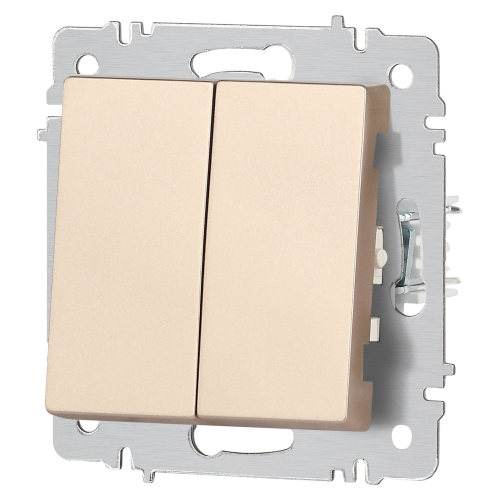 Выключатель 2-клавишный серии Intro Accent скрытой установки механизм цвет шампань 6-104-04. Номинальные характеристики 10А 250В. Выполнен из негорючего термопласта, оснащён винтовыми клеммами. Парные клеммы обеспечивают соединение шлейфом. Монтаж в подрозетник производится и на лапки, и на винты. Рамка приобретается отдельно. В серии представлены рамки до 5 постов: на 1 пост - 6-501-хх, на 2 поста - 6-502-хх, на 3 поста - 6-503-хх, на 6 поста - 4-504-хх, на 5 постов - 6-505-хх (где хх - цветовой код: 01 - белый, 01М - матовый белый, 02 - слоновая кость, 03 - алюминий, 04 - шампань, 05 - антрацит, 06 - перламутр, 07 - графит, 08 - бронза, 09 - титан, 10 - венге, 11 - сосна).